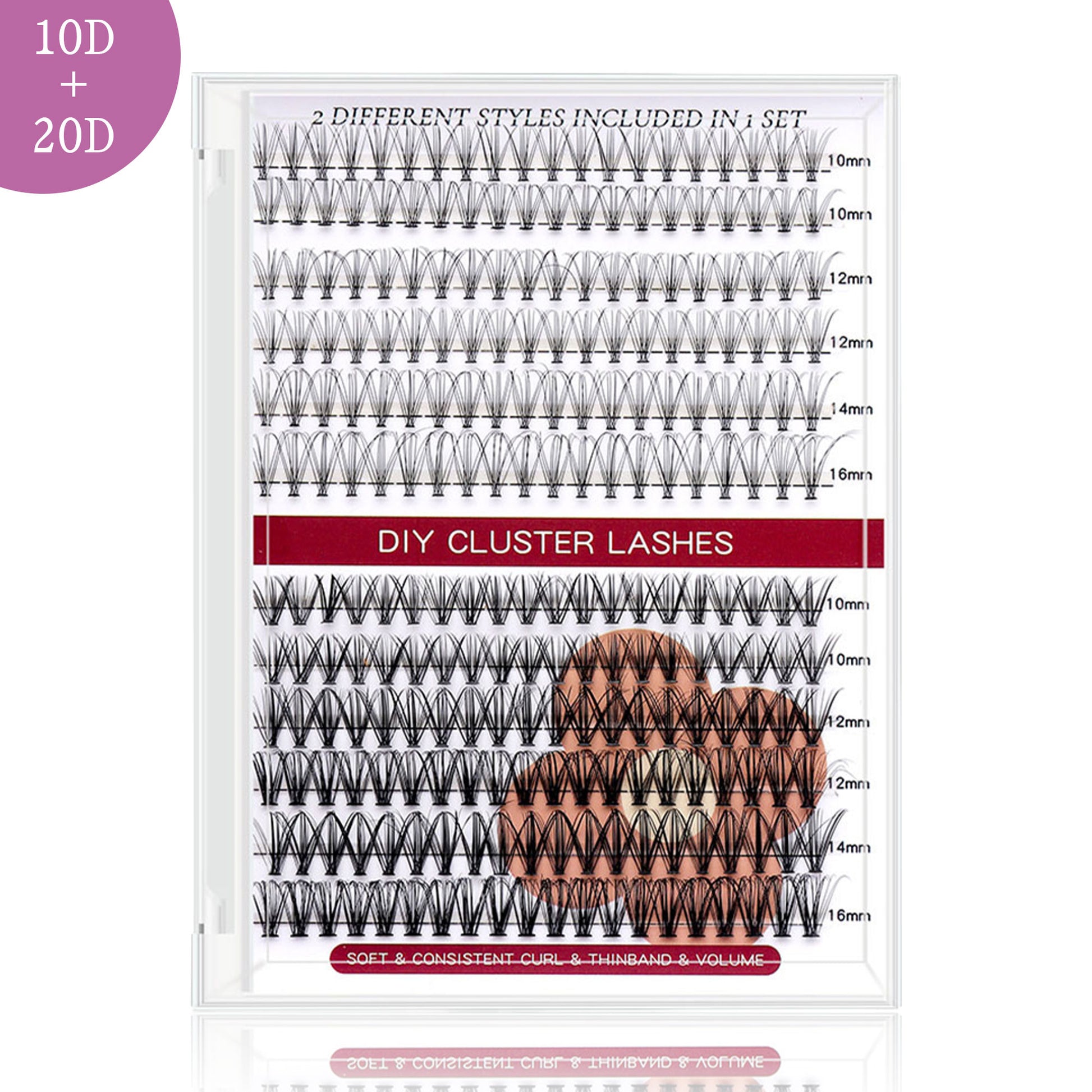 10D+20D cluster DIY Eyelash Extensions Made Easy: Whether you're a beginner or a professional, these DIY cluster false eyelashes allow you to create any look you desire—from fresh and delicate to glamorous and dramatic. Mix and match our lightweight, flowing false eyelashes to express your unique style.